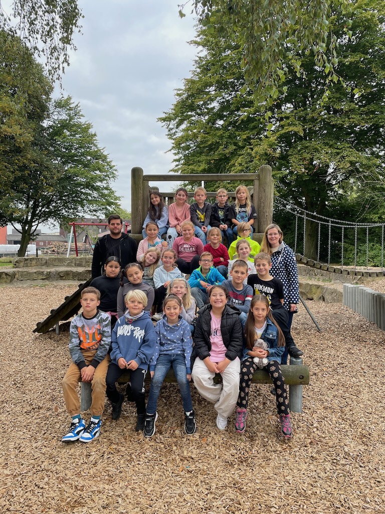 Das ist die Klasse 4b, die Adlerklasse, mit ihrer Klassenlehrerin Frau Weierke.